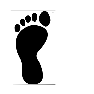 Piirrä jalan ääriviivat ja mittaa pisin kohta kantapäästä varpaaseen.