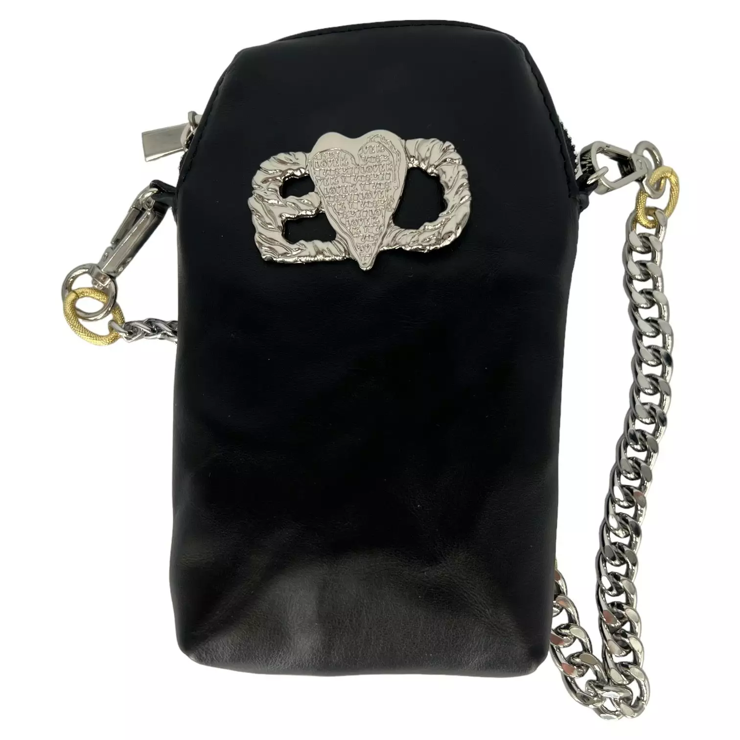 ELISA CAVALETTI Puhelinlaukku Musta Nahka Upea pieni monikäyttöinen pystymallinen laukku pehmeää nahkaa ja useissa väreissä. Vetoketjukiinnitys, puuvillavuori. Ketjuolkahihna 61 cm. 100 % nahkaa, vuori: 100 % puuvillaa. K 19 cm x L 11 cm x S 2,5 cm. Huolto: Kengänkiillotusaine ja pehmeä liina. Italialainen ja käsintehty.