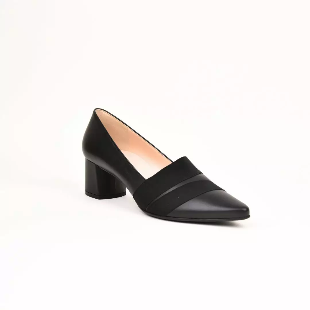 Tyylikkäät ja ajattomat mustat nahka-avokkaat, jotka sopivat täydellisesti niin arkeen kuin juhlavampiinkin tilaisuuksiin. Kengät on valmistettu laadukkaasta, pehmeästä lampaannahasta (babysheep-leder), joka mukautuu jalkaan ja tuntuu miellyttävältä käytössä. Teräväkärkinen muotoilu sekä leveä, tukeva keskipaksu korko tuovat eleganttia ilmettä ja samalla hyvää käyttömukavuutta koko päiväksi. Päällistä koristavat modernit, ristikkäiset joustonauhayksityiskohdat, jotka antavat kengälle persoonallisen ilmeen ja parantavat istuvuutta. Klassinen musta väri tekee mallista helposti yhdisteltävän eri asukokonaisuuksiin työpukeutumisesta iltamenoihin.