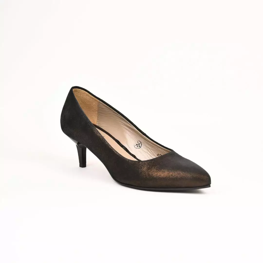Avokas on valmistettu nahasta, myös sisävuori on nahkaa. Värinä musta, joka kimaltaa kauniisti kultaa. Kapea 6cm korko. Lesti sopii kapealle ja normaalille jalalle.