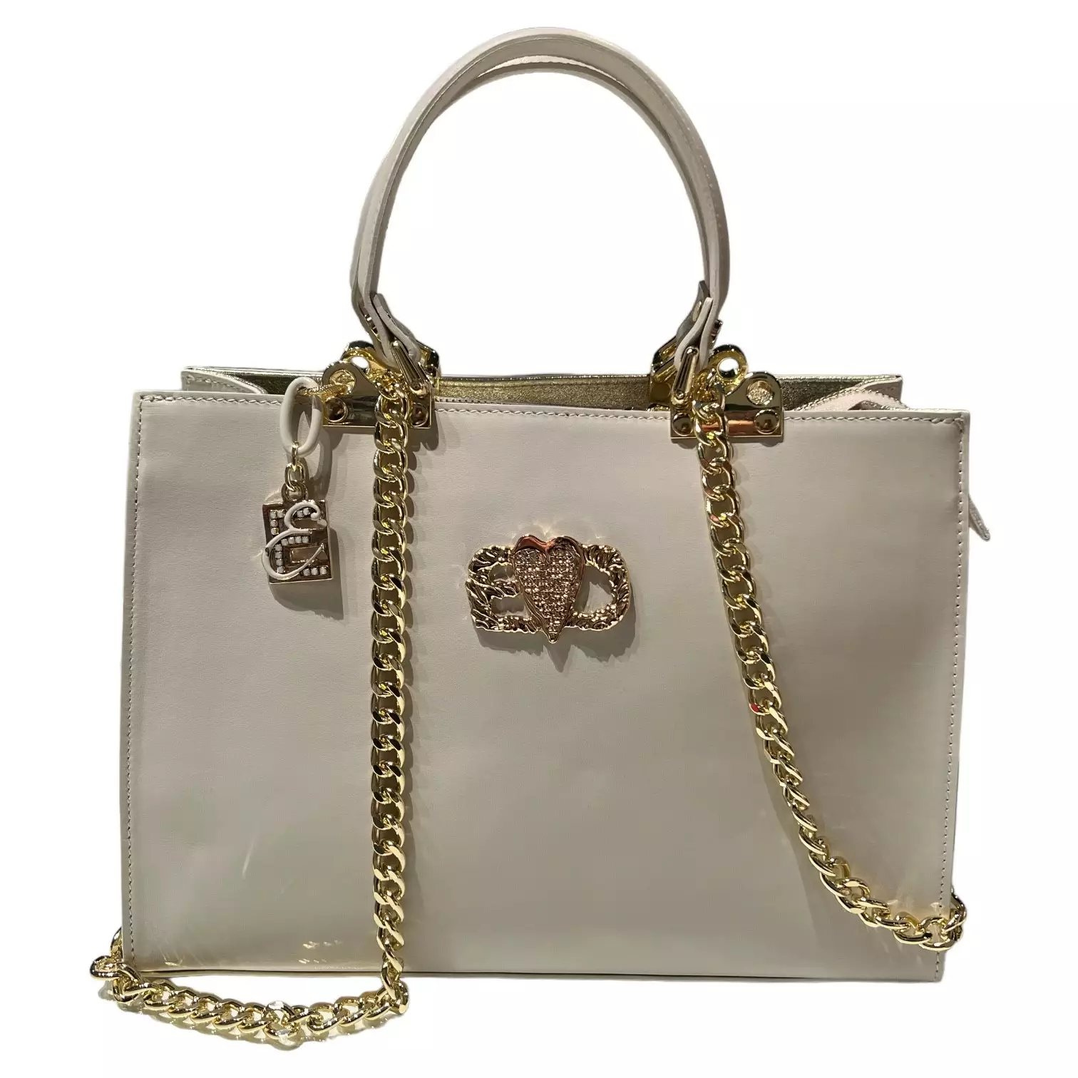 ELISA CAVALETTI Käsilaukku Offwhite Nahka Vetoketjukiinnitys. Sisällä puhelintasku ja vetoketjullinen tasku. Puuvillavuorattu. 4 niittiä sen pohjassa suojaamassa pohjaa. K 23 cm x L 31 cm x S 12 cm. Olkahihna 58 cm. Kahvat 14 cm. 100 % nahkaa, vuori: 100 % puuvillaa. 03149 Incontro Off-White. Huolto: Kengänkiillotusaine ja pehmeä liina. Italialainen ja käsintehty.