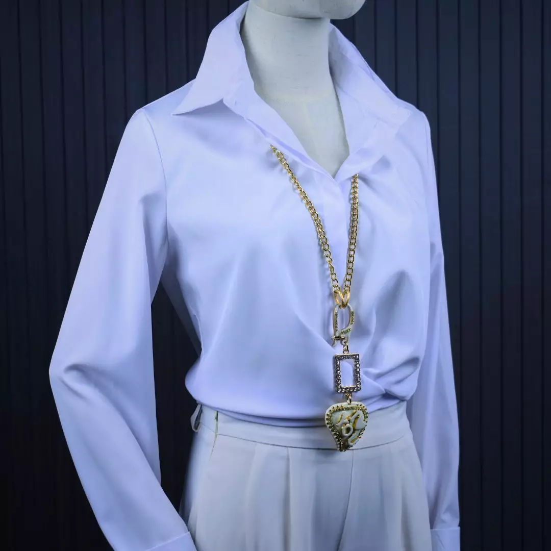Loistava kaulakoru kevääseen / kesän. Karabiinikiinnitys, säädettävä. Mitat: Ketjun pituus 68 cm, riipus 16 cm, takaketju 20 cm + 4 cm "E"-viimeistely. Värit: 04023 Gold Golden. Hoito: Pehmeä... Lue lisää