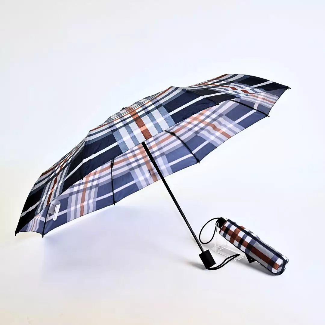 Tämä tyylikäs Lasessor-sateenvarjo on täydellinen asuste sateiseen päivään. Siinä on klassinen ja ryhdikäs laivastonsininen (navy) ruutukuosi, jossa on valkoisia ja ruskeita korostuksia.