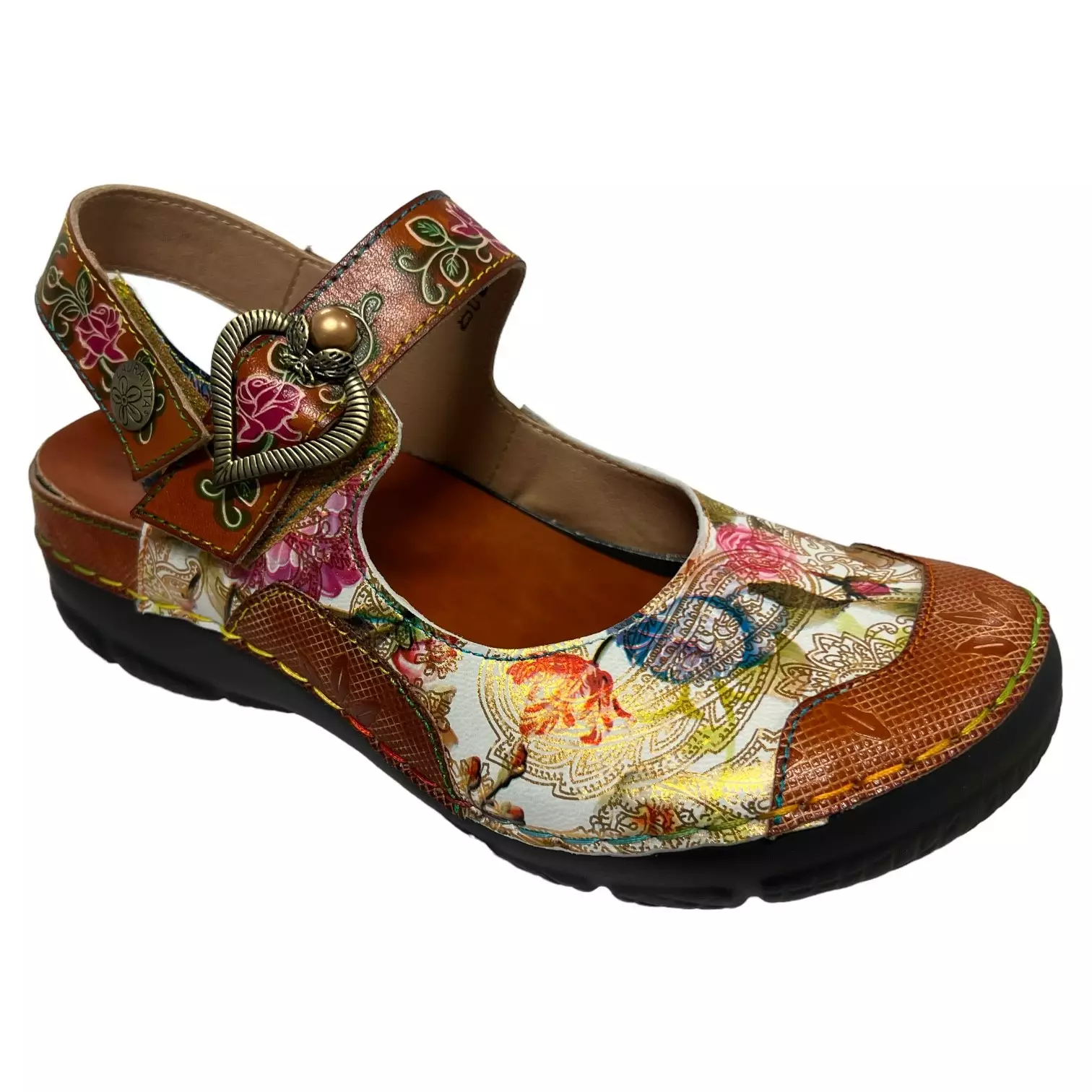 Laura Vitan moniväriset nahkaiset sandaalit, paljon kauniita yksityiskohtia.
