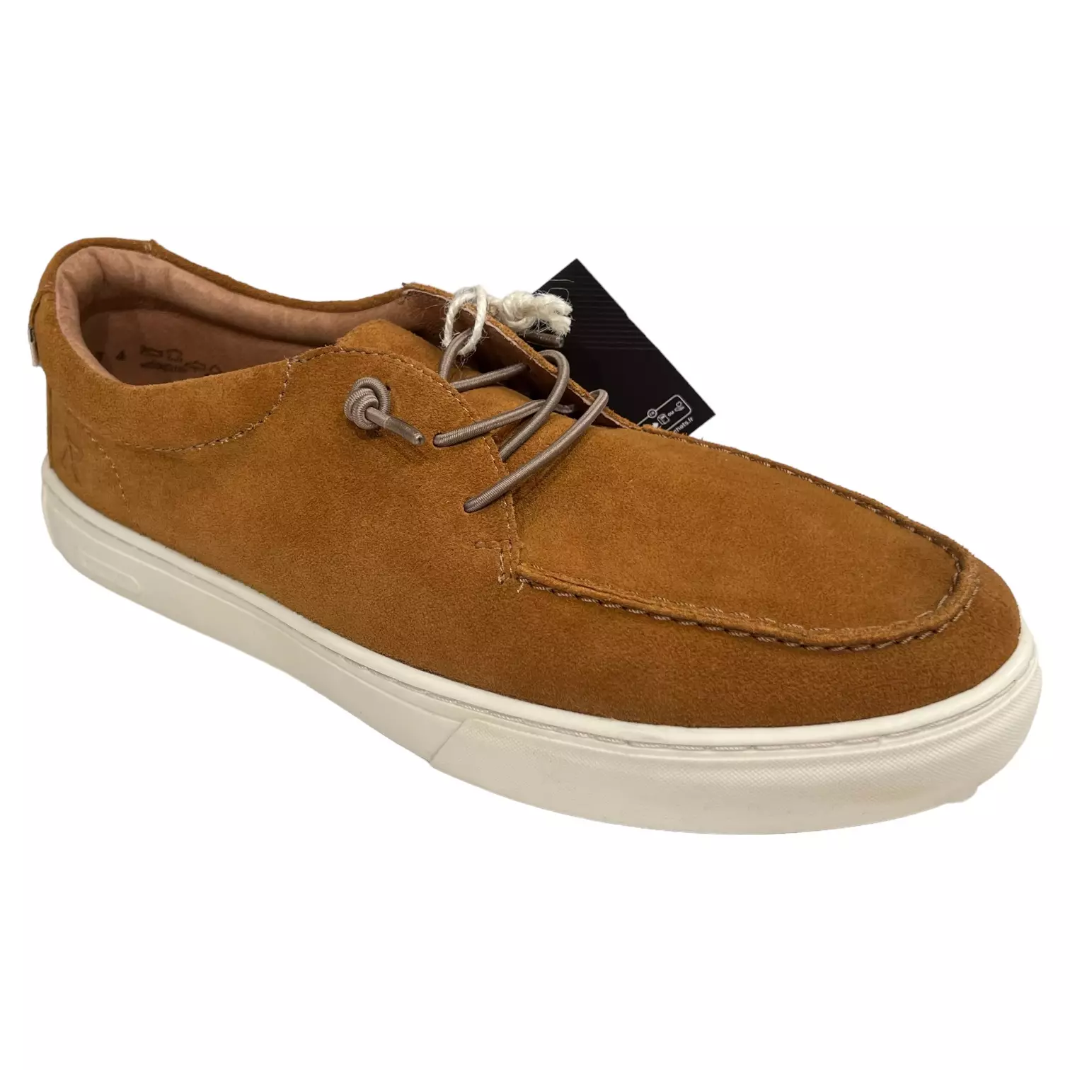 Mokkanahkaiset kävelykengät, joissa nauhat ja irrotettavat pehmeät pohjalliset.