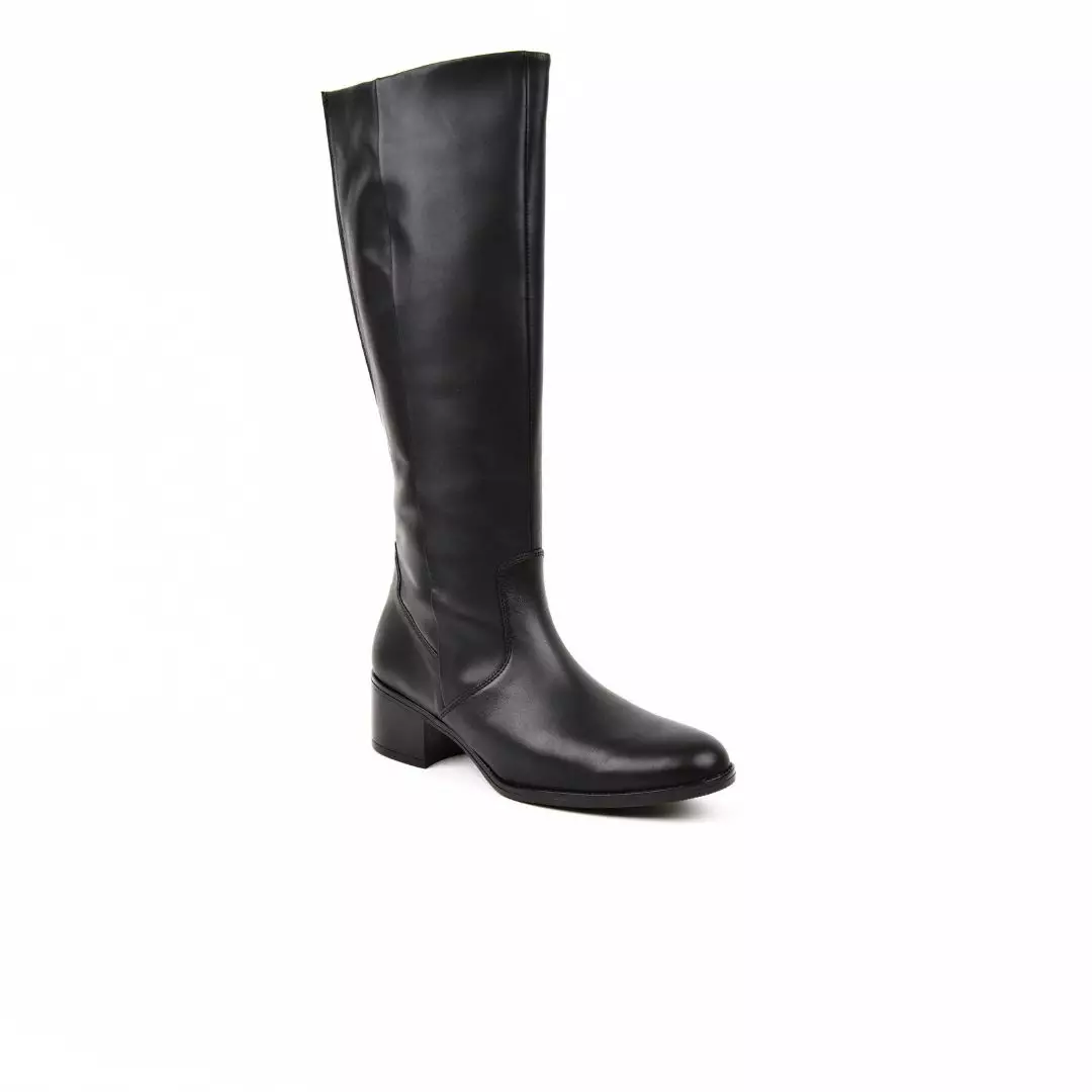 Naisten nahkaiset saappaat sivuilla olevalla vetoketjulla. Kengässä on F-lesti ja M-varsi.