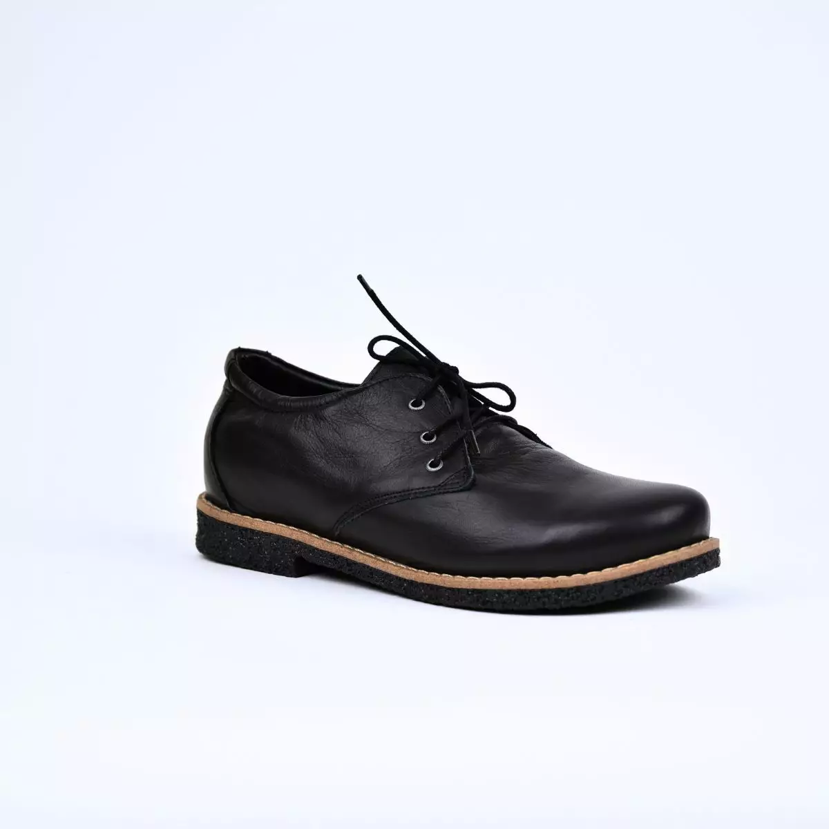 Mustat Andrea Contin kävelykengät matalalla varrella. Tyylikkäät ja mukavat erittäin pehmeästä nahasta valmistetut laadukkaat kengät. Edessä nauhat. Pohjaa kiertävä vaalea raita tuo kivan särmän ulkonäköön.