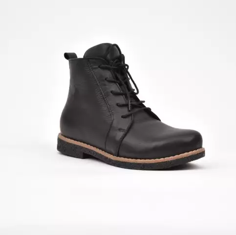 Pehmeästä vasikannahasta valmistettu nahkavuorinen nilkkuri, jossa on nauhat. Sisäsyrjällä vetoketju Kengän ulkomuoto on rustiikkinen ja lestin muoto myötäilee jalkaterän muotoa. Ulkopohja on... Lue lisää