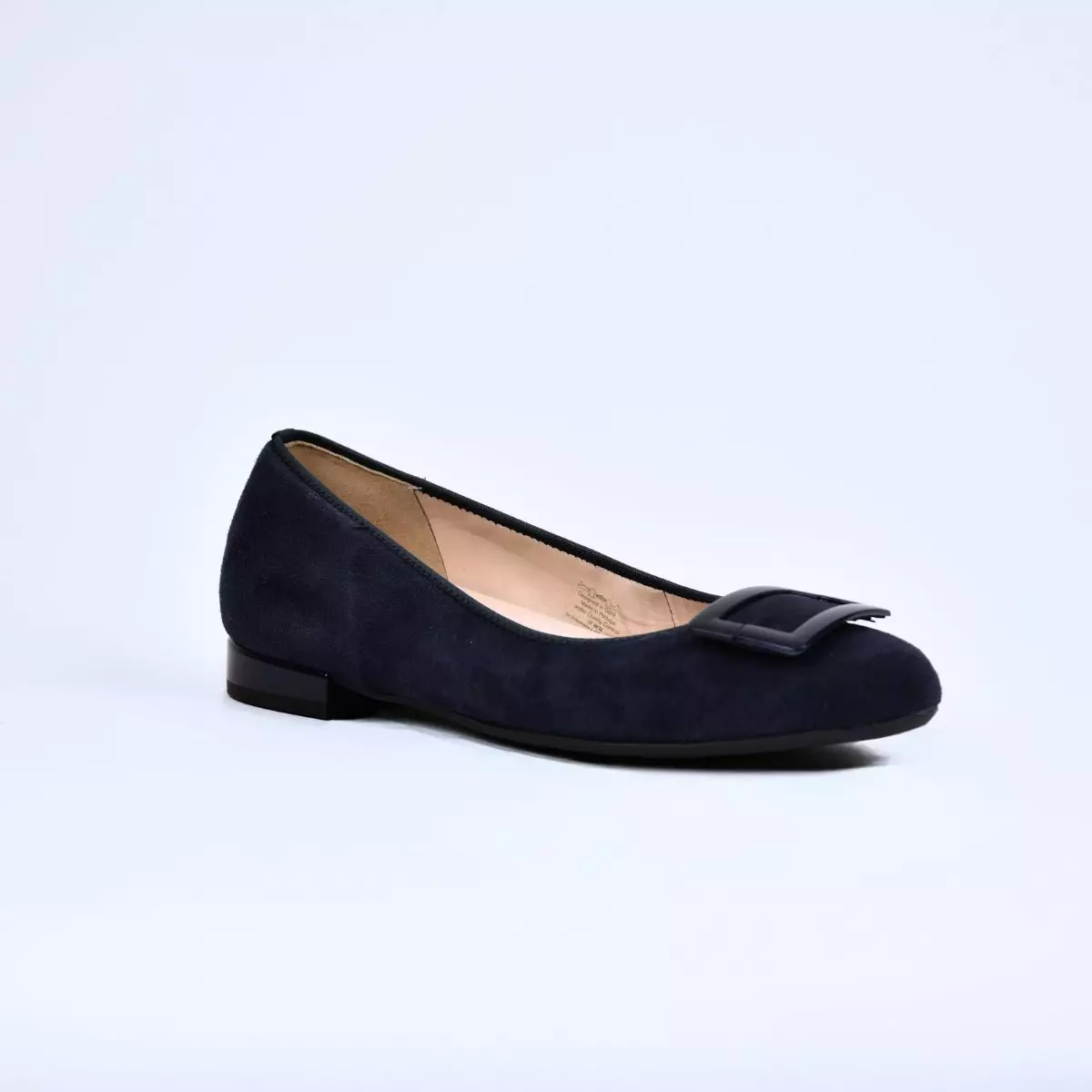 Tyylikäs ja elegantti ARA-naisten ballerina, joka hurmaa ajattomalla muotoilullaan ja erinomaisella käyttömukavuudellaan. Kengän päällinen on valmistettu pehmeästä mokkanahasta, ja syvän tummansininen sävy tuo ilmeeseen hienostunutta, rauhallista eleganssia. Tämä monikäyttöinen väri sopii täydellisesti sekä arkipukeutumiseen että siistimpiin tilaisuuksiin.