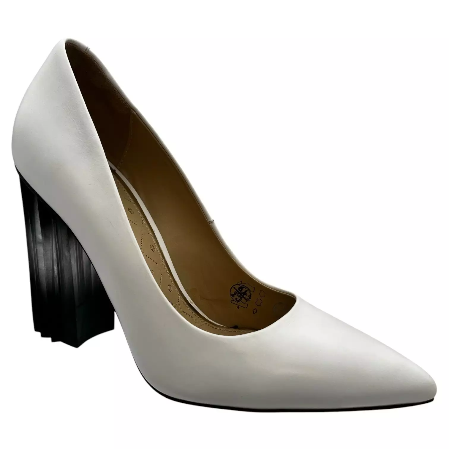 Naisten erittäin kauniit korolliset avokkaat normaalilla lestillä. Kengät valmistettu aidosta nahasta. Valkoiset korkokengät sileää nahkaa ja mustat korkokengät mokkanahkaa. Avokkaissa kannan... Lue lisää