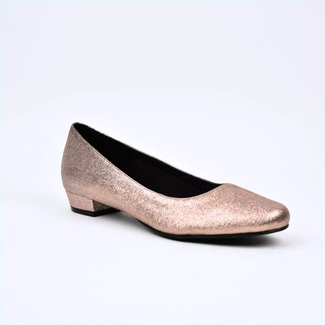Chantana – tyylikkäät ja ajattomat ballerinat, jotka tuovat ripauksen juhlavuutta arkeen. Kengän päällinen on kauttaaltaan hienostuneen kimaltava, lämpimän samppanjan-/ruusukullan sävyinen, mikä tekee mallista näyttävän mutta silti helposti yhdisteltävän. Pyöristetty kärki ja matala, tukeva korko takaavat käyttömukavuuden koko päiväksi. Pehmeä sisäpohja lisää mukavuutta, ja klassinen siluetti sopii niin juhla-asuihin kuin siistimpään arkityyliin. Täydellinen valinta, kun haluat yhdistää mukavuuden ja elegantin ilmeen.