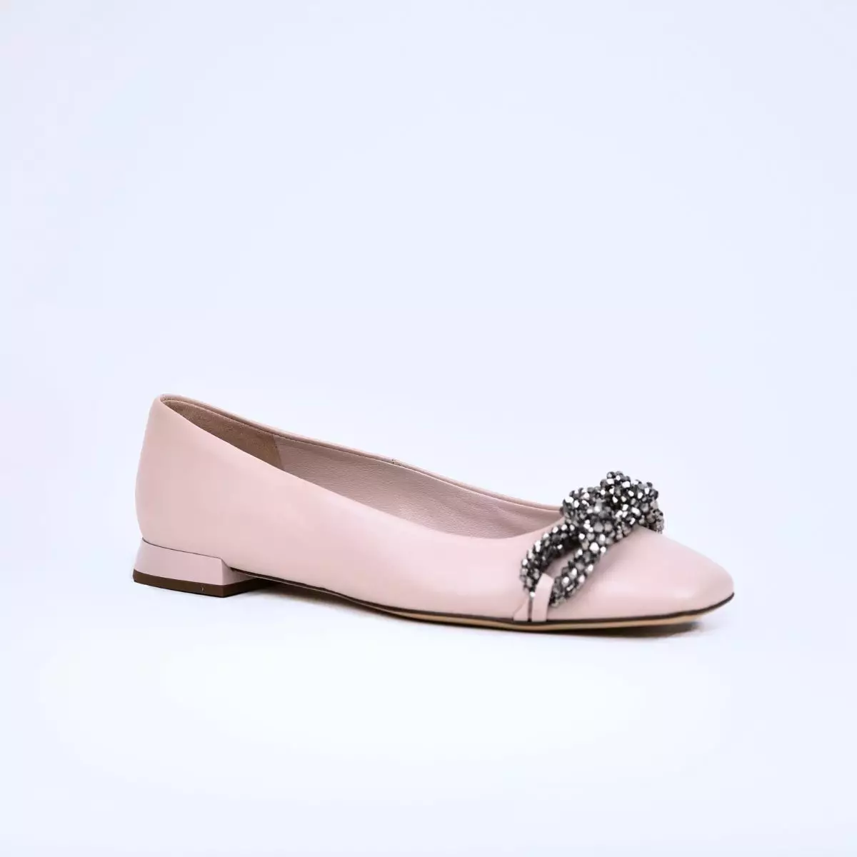Kärjen näyttävä, tummista koristekivistä koostuva rusetti tuo kenkään eleganttia ilmettä ja hienostunutta säihkettä. Matalan koron ja sirolinjaisen muotoilun ansiosta balleriinat ovat sekä naiselliset että käytännölliset. Nahkainen sisäpohja lisää hengittävyyttä ja käyttömukavuutta.
