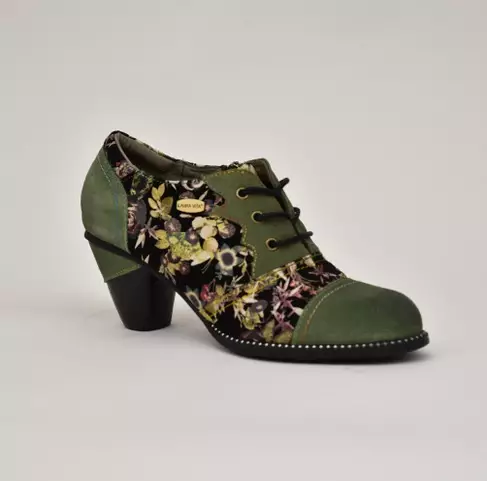 Näissä Laura Vitan näyttävissä vihreissä mokkanahkanilkkureissa on kauniit kukkakuivoidut koristeet. Edessä on nauhakiinnitys ja sisäsyrjällä vetoketju. Kestävä kumipohja. Koron korkeus on... Lue lisää
