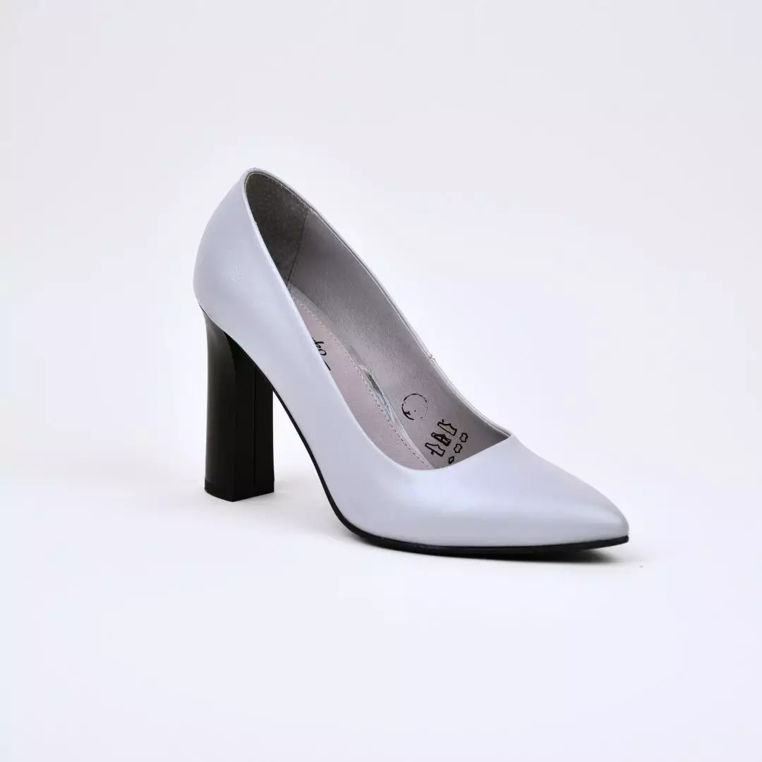 Tämä upea avokas on valmistettu nahasta, myös sisävuori on nahkaa. Värinä helmenhohtoinen hopea, ehkä hieman vaaleansiniseen taittuva. Katseenvangitsijana upea ja tukeva 10cm korko.Lesti sopii kapealle ja normaalille jalalle. Koot 36-41.