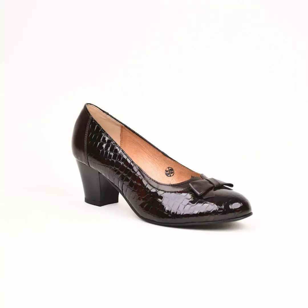 Avokas on valmistettu lakerinahasta, myös sisävuori on nahkaa. Väreinä musta, tummansininen ja viininpunainen, pinta kauniisti kuvioitua lakerinahkaa ja kaunis rusettikoriste jalkapöydän päällä. Lesti on XXL, joten sopii leveälle jalalle. Pehmustettu sisäpohja lisää käyttömukavuutta. Koot 36-41. Tukeva korko 5,5cm.