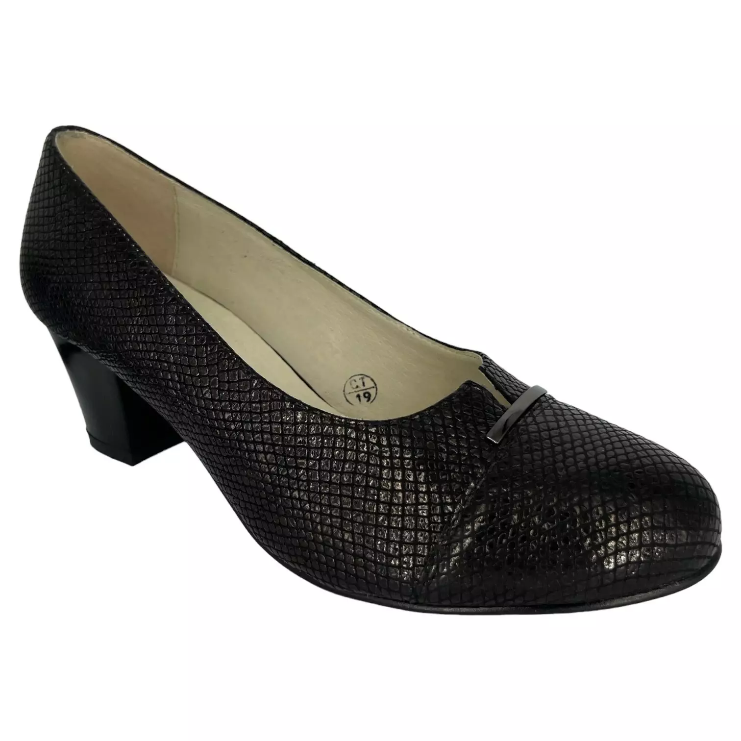 Avokas on valmistettu nahasta, sisävuori on nahkaa ja tekstiiliä. Väreinä musta, tummansininen ja musta-pronssi. Lesti on XXL, joten sopii leveälle jalalle. Pehmustettu sisäpohja lisää käyttömukavuutta. Koot 36-44. Tukeva korko 6cm.