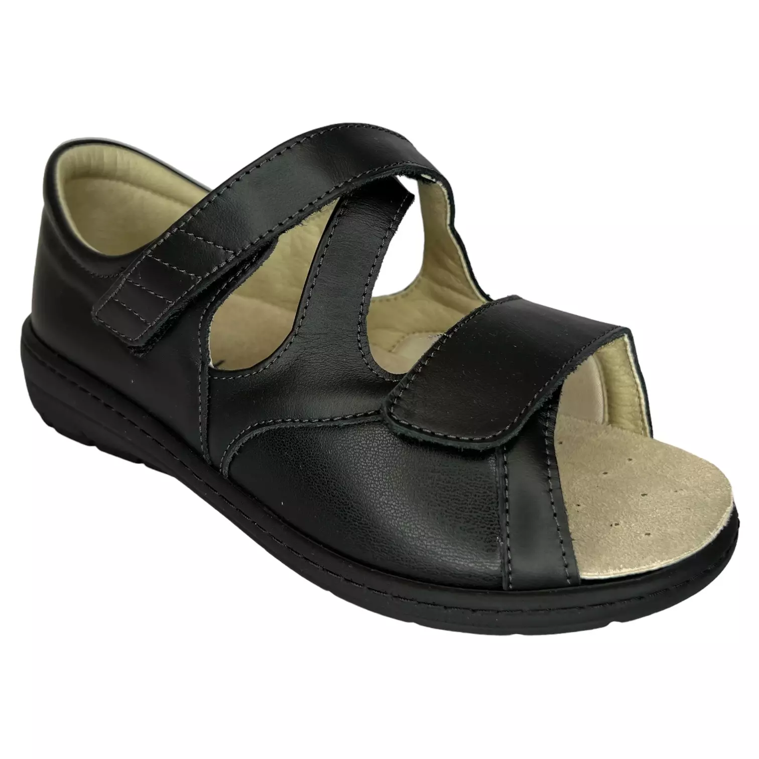 Laajasti avautuva sandaali. Päällä tarrakiinnitys ristikkäin, päkiän päällä suora tarrakiinnitys. Lääkinnällinen apuvälineluokitus. Erityisleveä lesti. Päällinen nahkaa, päkiän ulko-... Lue lisää