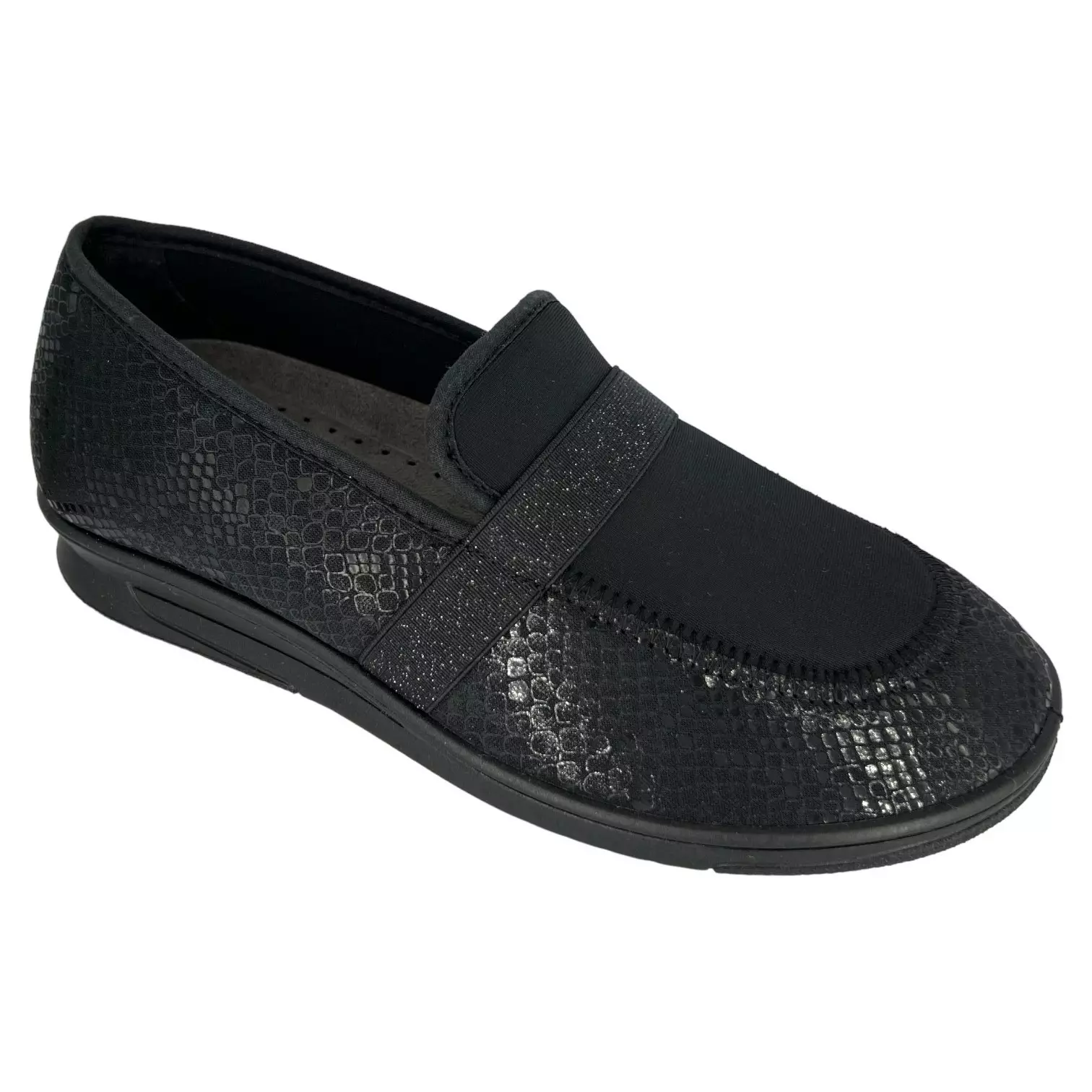 PODOWELL Nelia Kävelykengät Musta Tekstiili Tässä Nelia-mokkasiinissa yhdistyvät eleganssi ja käytännöllisyys. Mokasiini venyy todella paljon jalan etuosassa. Hauraille ja epämuodostuneille... Lue lisää