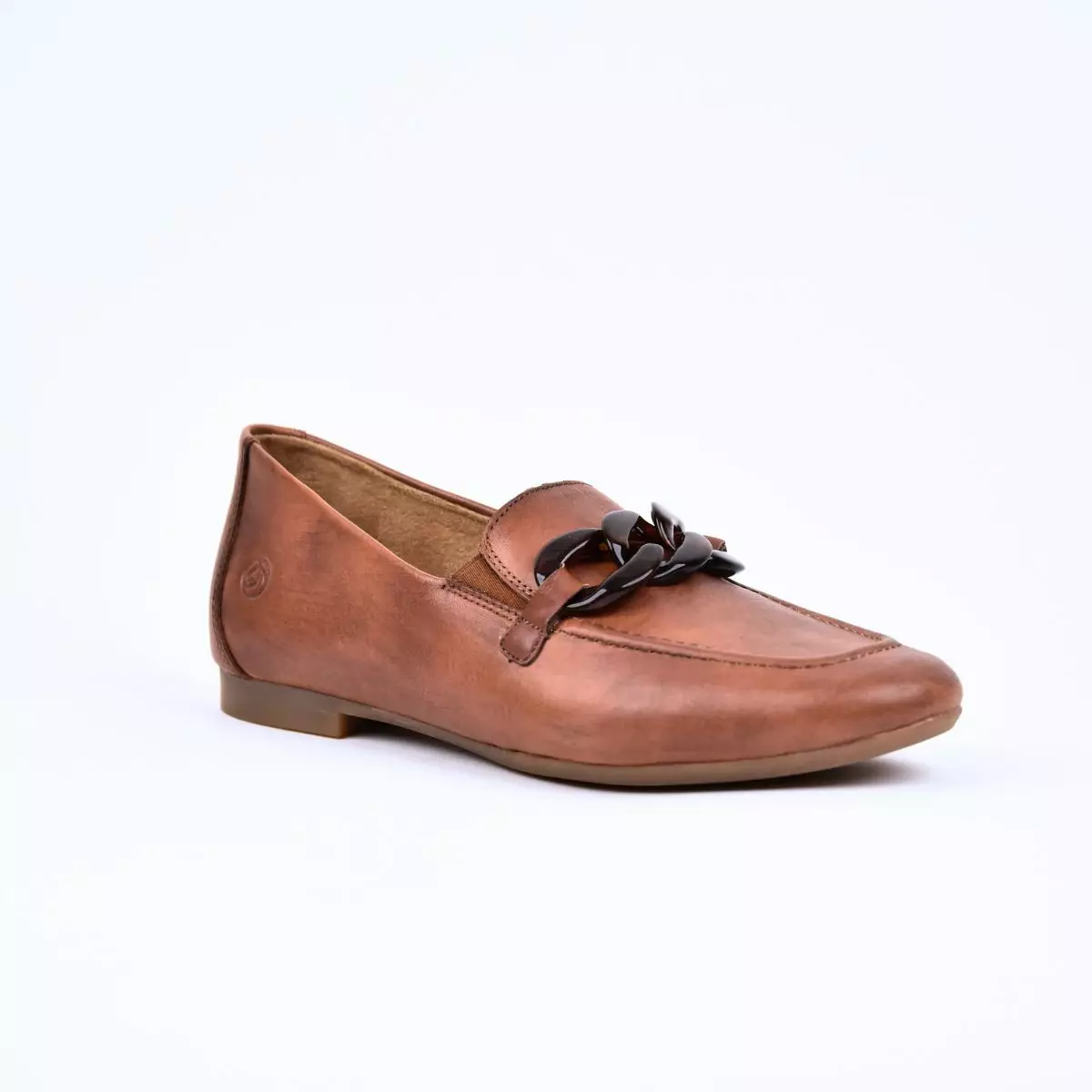 Tyylikkäät Remonte-naisten loafersit ruskeaa sileää nahkaa. Ajaton ja helppokäyttöinen slip-on-malli, jossa on pyöristetty kärki ja matala, mukava korko. Päällistä koristaa näyttävä ketjuyksityiskohta, joka tuo klassiseen malliin modernia ilmettä. Pehmeä sisäpohja ja joustavat sivuresorit takaavat hyvän istuvuuden ja miellyttävän käyttömukavuuden koko päivän ajan. Monikäyttöinen valinta niin arkeen, toimistoon kuin vapaa-aikaan – helppo yhdistää farkkuihin, housuihin tai mekkoon.