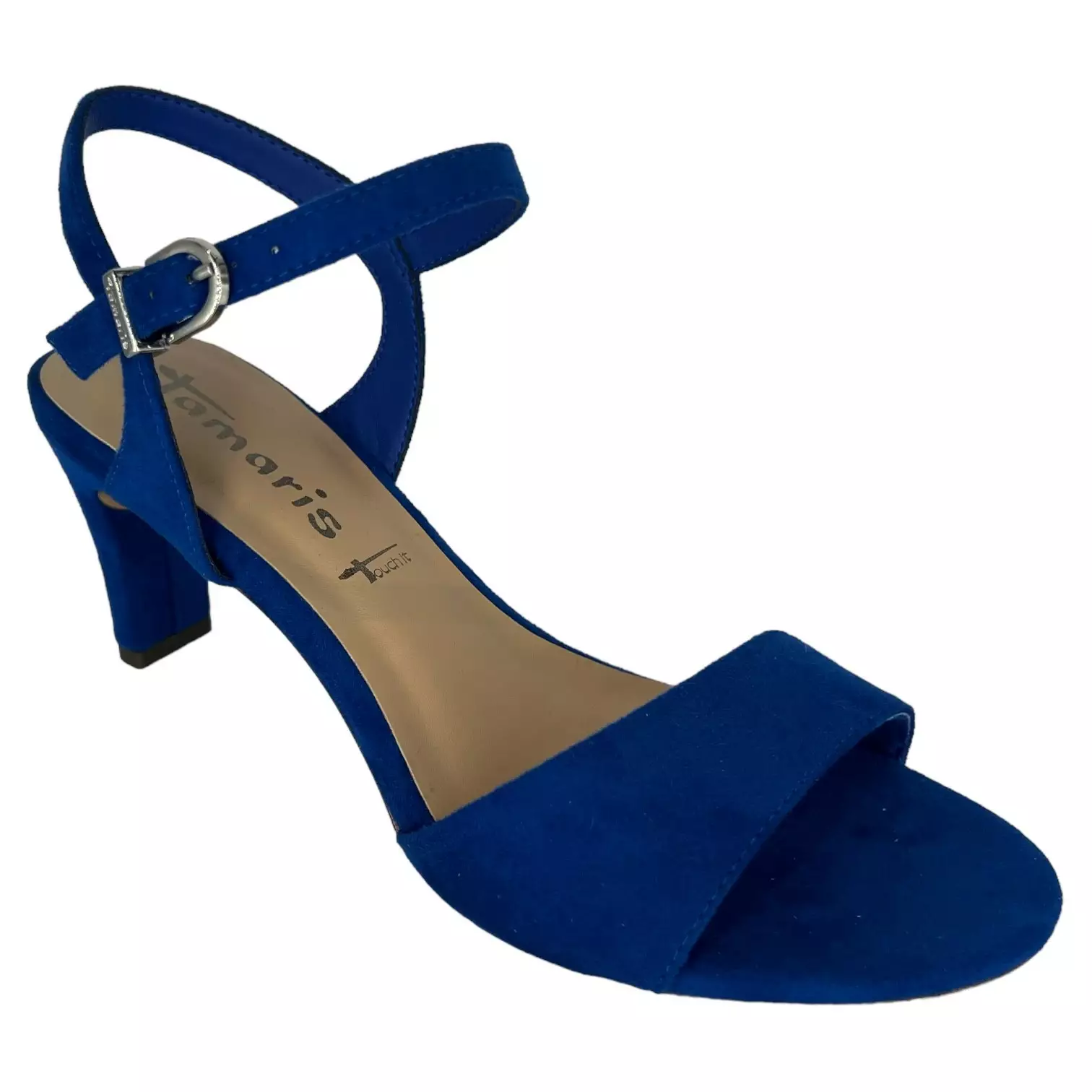 Kuninkaallinen sininen väri. Tekstiiliä sekä päällinen että sisältä. 7cm korkea tikkakorko.