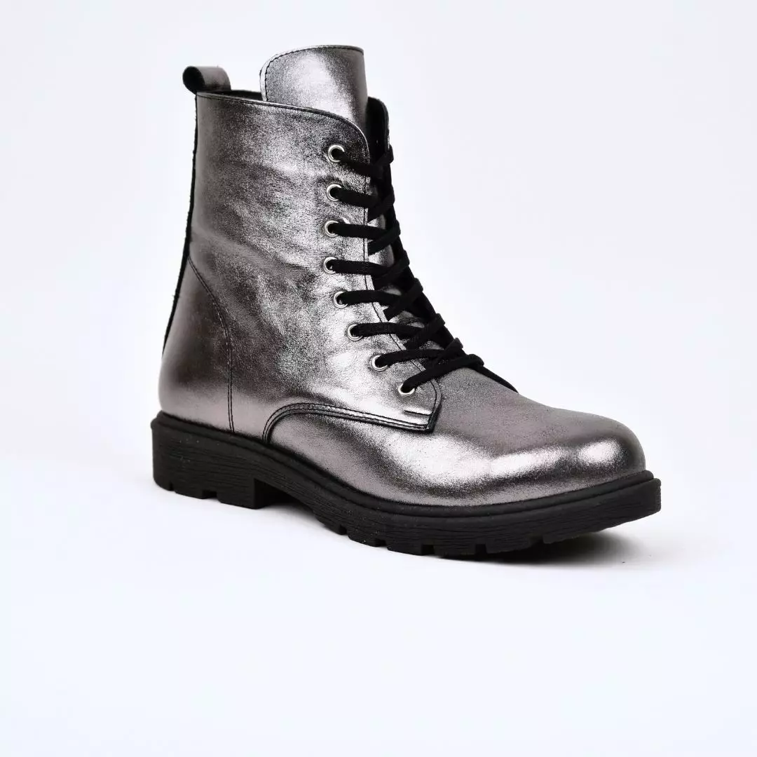 Naisten nilkkurit Andrea Conti -merkiltä modernissa metallinhohtoisessa sävyssä. Korkeavartinen malli yhdistää tyylikkyyden ja käytännöllisyyden: edessä nauhoitus istuvuuden säätämiseksi ja sivussa vetoketju, joka helpottaa pukemista. Kestävä, kuvioitu kumipohja takaa hyvän pidon ja käyttömukavuuden arjessa. Pehmeä nahkapäällinen mukautuu jalkaan ja antaa kengille laadukkaan ilmeen. Täydellinen valinta syksyyn, talveen ja kevääseen – sopii niin farkkujen kuin mekkojenkin kanssa.